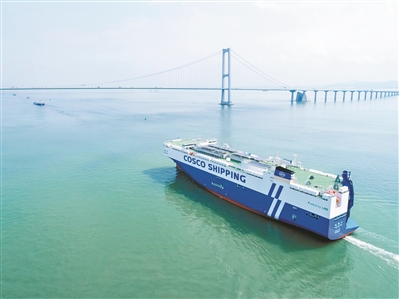 “远海口”轮是首艘完全满足中国船级社《新能源汽车滚装运输安全技术指南》的船舶,该指南由我国自主制定,以更高规范标准引领行业健康发展。中远海运深度参与该指南编制工作,“远海口”轮以“标准制定—技术落地—运营示范”全链条实践,成为国内首艘获颁“NEV Carriage”附加标志的滚装汽车运输船。