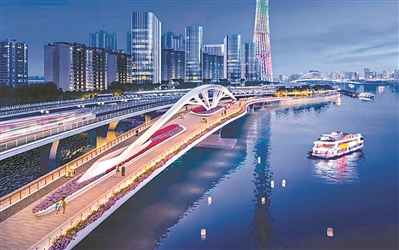 根据施工进度,黄埔涌步行桥预计8月底前完成建设,形成步移景异的慢行桥梁。