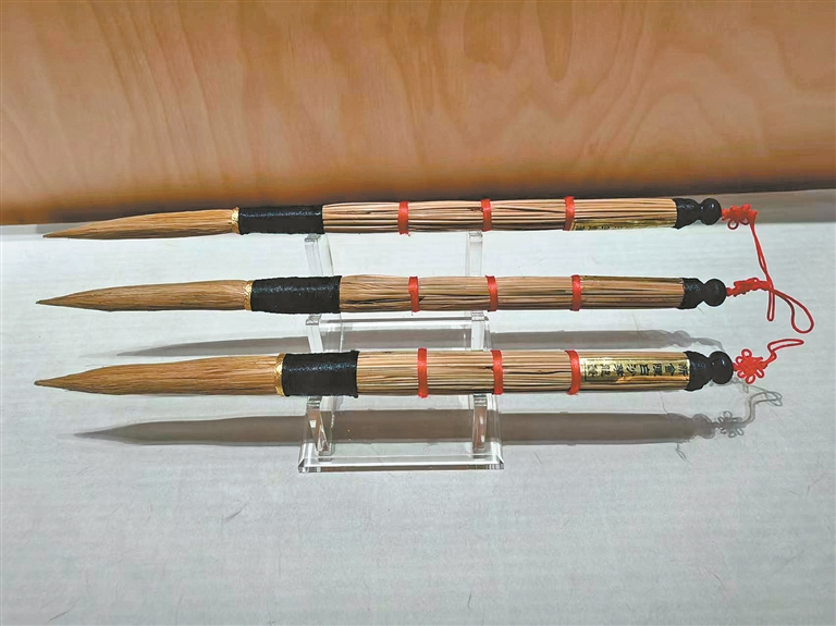 广东著名的国家级非遗代表性项目白沙茅龙笔起源至今已有500多年历史,创始人就是陈献章。白沙茅龙笔的奇特之处在于材料,它是以新会圭峰山特产的茅草制成,可以通过浸泡时间长短改变笔的软硬程度。