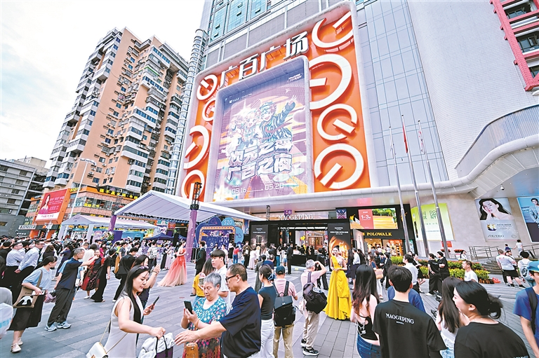 “一般从五月中到六月底,都是商场的年中大促时间,特别是适逢‘520’和‘618’双节叠加,更加刺激了消费市场和催旺人们的消费意欲。”广百百货负责人表示,每逢年中大促,环市路、天河路、北京路等商圈都会热闹非凡,处处是排队购物“车龙”“人龙”。
