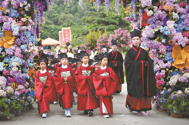 登福山、会名校,体验“金榜题名”!5月17日上午,2025东莞观音山状元文化节暨第二届东莞名(民)校推介会启动,全日吸引数千市民游客参与。2025东莞观音山状元文化节(以下简称“状元节”)将持续至7月底,其间的每个周末均有“状元及第”主题巡游互动和古风表演。
