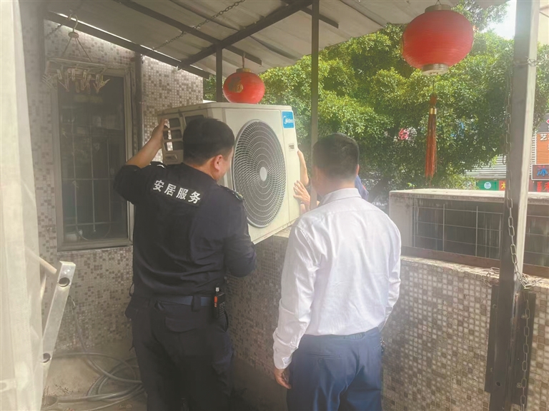 近日,棠德南社区居委会和棠德花苑物管中心工作人员找来几名拆装师傅,将安装在梁女士家阳台外的空调外机逐一进行挪移,其中1台搬离梁女士家的阳台范围,另外3台分别向前、向两边放置,呈现较分散状态分布,跟之前12台外机重重叠叠相比有了明显好转。“这下总算比之前清凉、安静些了。”梁女士说。