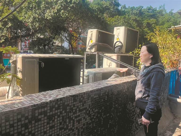 原来,梁女士家住二楼,紧邻着一楼商铺,她家阳台外的很多空调外机都是一楼商户们装的,这些空调外机运转时发出较大的“嗡嗡”声,其中不乏一些大功率外机,部分空调外机更是高出了梁女士家的阳台围墙,或多或少影响了采光。