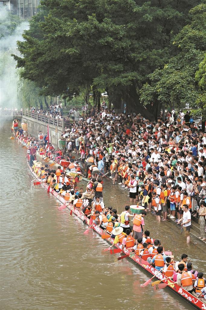 广州日报讯 (全媒体记者何瑞琪)昨日,“穗城源”第三届九龙湖龙舟邀请赛在广州市黄埔区激情开赛,共有27支龙舟队伍参赛。虽然现场伴有阵雨,但依旧热情不减,众多居民组团前来观看,数据显示,当天现场观众达1万人次,线上直播观看观众累计超10万人次,赛事期间周边商圈客流量激增200%。