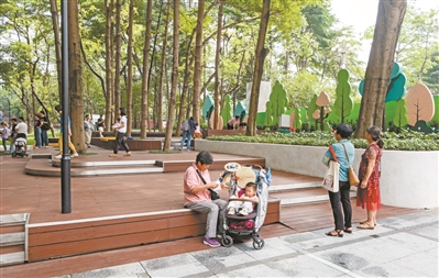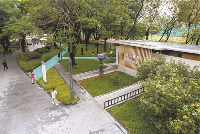 “我们打开天体东北与西北两个街角空间,将原本功能单一的封闭绿地改造为开放活泼的口袋公园,释放公共空间约960平方米,打开后的场地成为融合林下休憩、康体、慢跑等功能的城市绿色休息站。”广州市城市规划勘测设计研究院有限公司人居景观院党委书记、副院长、教授级工程师陈智斌说。
