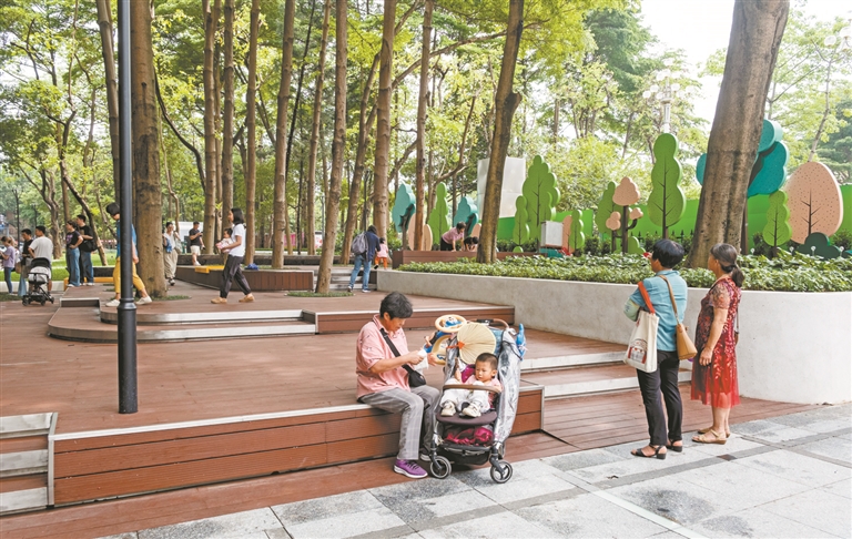 “整个改造过程中,我们没有砍伐、迁移一棵树,以人民为中心进行升级。”区展辉以烈士陵园地铁站A口进入英雄广场的人行道为例,过去这条通道只有1.5米宽,如今增加到3米,这个宽度刚好是以两边的树木为界,改造只去除低矮的灌木丛。完工后,遮阴的效果不减,市民走起来更宽敞舒适。