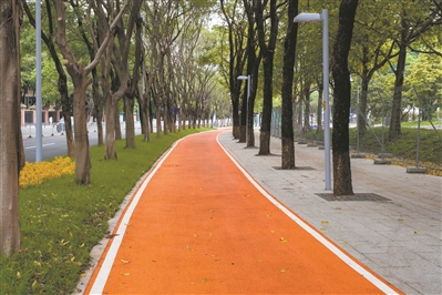 彩色道路凸显青春活力,打造开放共享生态体育公园