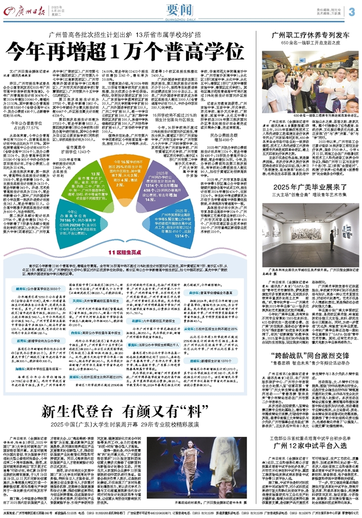 广州日报要闻 A3今年再增超1万个普高学位 林欣潼2025-05-20 2 2025年05月20日 星期二