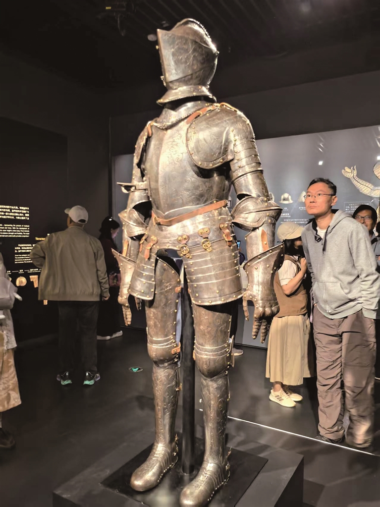 而近期南山博物馆最火的当数深圳首个聚焦欧洲骑士文化的重量级特展“钢铁与荣耀:欧洲骑士盔甲与文化展”,仅仅开展的首个周末,就已参观人数逾万,门口从早到晚排起了长龙,目前依然参观人数持续攀升。