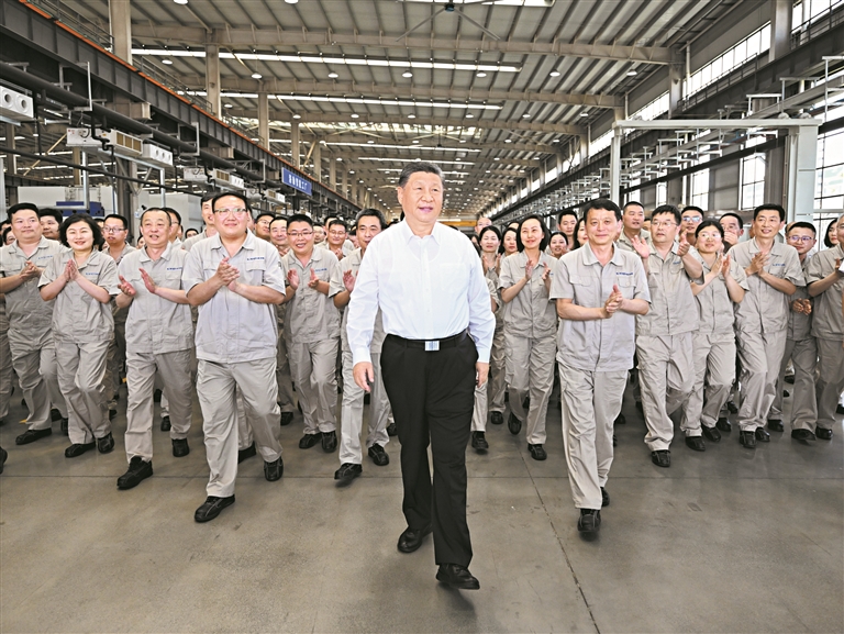 19日下午,习近平首先来到洛阳轴承集团股份有限公司考察。该公司前身为“一五”期间建成的洛阳轴承厂。在智能工厂,习近平了解企业发展历程,听取不同类型轴承产品用途和性能介绍,走近生产线察看生产流程。他对围拢过来的企业职工说,制造业是国民经济的重要支柱,推进中国式现代化必须保持制造业合理比重。现代制造业离不开科技赋能,要大力加强技术攻关,走自主创新的发展路子。他勉励职工发扬主人翁精神,在企业发展中奋发有为、多作贡献。