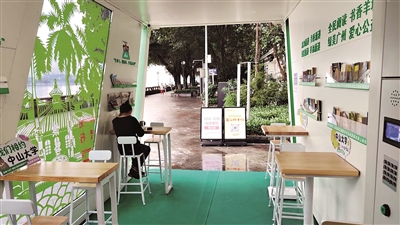 记者在现场看见,流动花城书房分成室内和半开放两部分,其造型设计与街区文化紧密融合,提供充电饮水、急救医药、行李寄存、图书阅读,文创宣传、党建活动、治水宣传以及便民轻餐等公益服务。