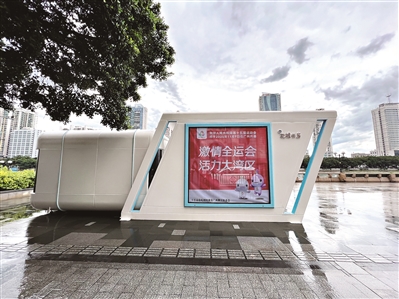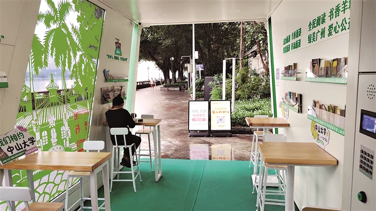 首座试运营的流动花城书房位于海珠区滨江东路中山大学北门广场,与中山大学文创IP整合营销,美观新颖的造型加上丰富的文化功能,受到很多市民和游客的青睐和点赞。