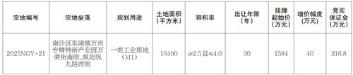经广州市南沙区人民政府批准,广州市规划和自然资源局南沙区分局公开挂牌出让1宗国有建设用地使用权。