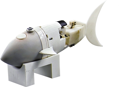 在吴贤铭智能工程学院的实验室内,记者见到了十几种大大小小形状各异的机器鱼,有中等个头的“草鱼”“鲟鱼”,也有个头较大的“小海豚”,还有个头十分扁平的“鳐鱼”。这些机器鱼都依据仿生学原理进行设计,游动时尾鳍会像真鱼一样摆动。