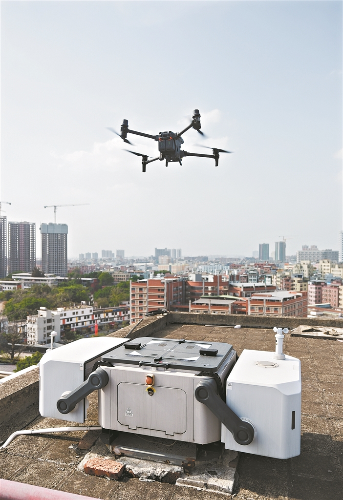 伴随着低沉的嗡鸣声,数架无人机从白云辖内各处的楼顶机库腾空而起,开始了日常的低空巡查工作。马路上是否有渣土车行驶;城中村的楼房有没有“长高”,有无出现铁棚违建;各大商圈、产业园区等建筑外立面情况……在白云区城市管理监控指挥中心,地面接收器的屏幕上,显示出无线传输的实时图像,无人机巡航覆盖范围内情况一览无遗。