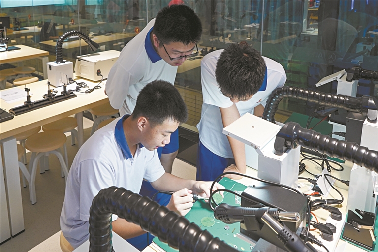 记者了解到,广州大学附属中学“AI未来·少年科学院”以“问题驱动实践、场景赋能创新”为核心,构建起覆盖“学习—研究—创造”全链条的育人生态,让科学教育从书本走向产业前沿。在广大附中,跨学科项目式学习成为常态。学生每学期可围绕真实产业需求设计项目,如“智能微电网搭建”“无人机避障算法开发”,以任务链串联多学科知识,实现从理论到实践的跨越。“AI未来·少年科学院”建成后,学生还可通过芯片技术实践室模拟半导体制造全流程,从设计到封装融合数学、物理与编程知识;建筑科技馆中,3D打印的广州地标模型成为力学课堂教具,学生在调试抗震结构中理解装配式建筑技术。这里将为学生们拓展研究边界,提供新的创新路径。