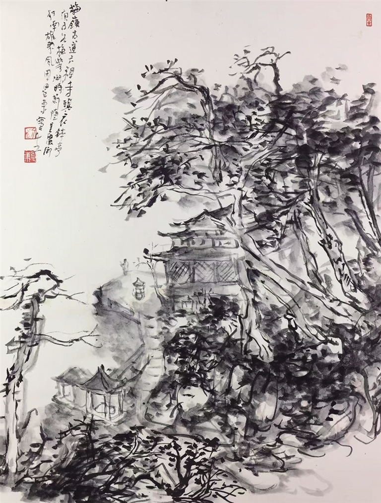 刘思东:我的国画创作以山水题材为主,早期在传统山水画的基础上吸收了西方绘画的养分,如色彩和构成,以增强画面的视觉冲击力。但后来发现这条路未必能走远,于是重新回归传统,深入研究中国山水画的演变历程,通过系统学习来领悟其独特的艺术语言。