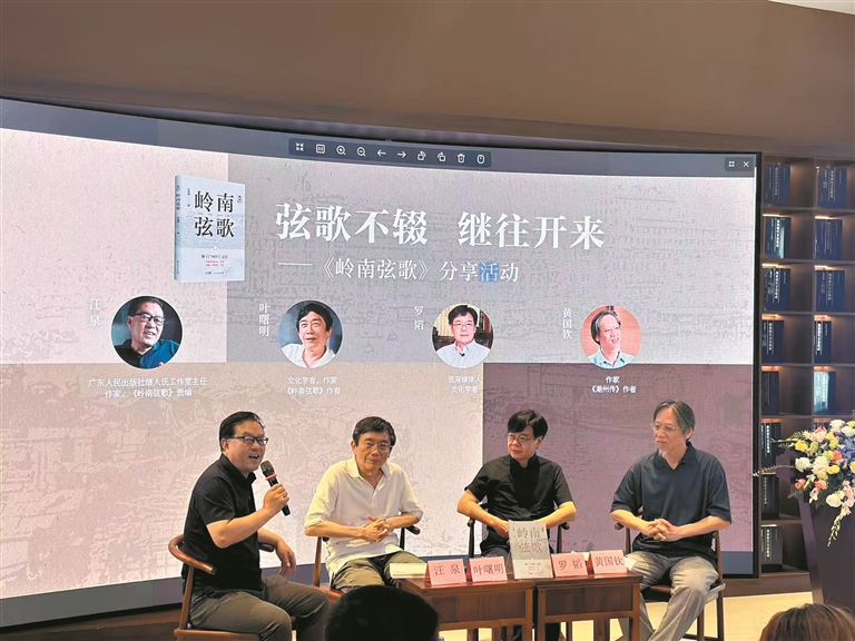 广州日报讯(全媒体记者吴波)5月23日下午,著名作家叶曙明所著《岭南弦歌》新书首发式在越秀区博物馆紫烟阁隆重举行。文化学者、作家顾作义,文化学者、作家、本书作者叶曙明,文化学者、作家罗韬,《潮州传》作者黄国钦以及出版方等嘉宾出席活动。