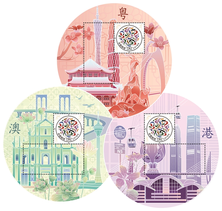 本次发布的主题纪念邮品包括《悦动十五运》个性化邮票、《圆梦湾区·三地同辉》珍藏邮折、《中华人民共和国第十五届运动会纪念封》等9款产品,分别是4款个性化邮票、2款纪念邮品、2款湾区地标明信片及1款纪念封。