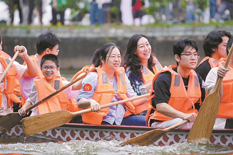 广州日报讯 (全媒体记者刘艺明 通讯员刘颖君摄影报道)端午将至。昨日,在华南农业大学,中国女子龙舟队前国手、佛山南海九江龙舟女队教练宋艳冰向高校学子分享自己的冠军故事,让传统民俗迅速“圈粉”。据介绍,这是九江龙舟首次“划”进高校,主办方希望大学生通过龙舟课堂,亲身感受团结协作、奋勇拼搏、坚韧不拔的龙舟精神,也能传递出佛山环两江先行区的独特魅力,吸引他们关注佛山、了解佛山、扎根佛山。