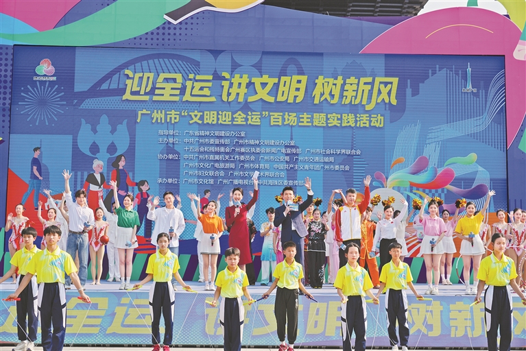 2025年,广州围绕文明交通、文明服务、文明礼仪、文明旅游、文明餐桌、文明观赛、生态环保、文化体育八个主题,举办“迎全运讲文明树新风”百场主题实践活动,积极塑造城市文明新风尚,营造迎接全运、参与全运、共享全运的浓厚氛围。