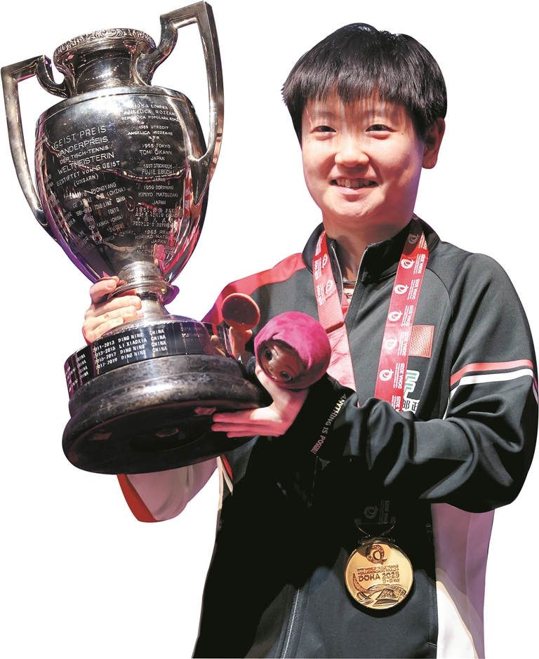 2025年多哈世乒赛昨晚落下帷幕,中国队以四冠收官,包括王楚钦/孙颖莎实现混双三连冠、王楚钦首夺男单冠军、孙颖莎卫冕女单冠军,“莎头”组合双双荣膺“双冠王”。王曼昱/蒯曼斩获女双冠军,这是王曼昱在世乒赛上夺得的女双第三冠,前两届她与孙颖莎搭档。男双冠军花落日本队组合户上隼辅/篠塚大登。