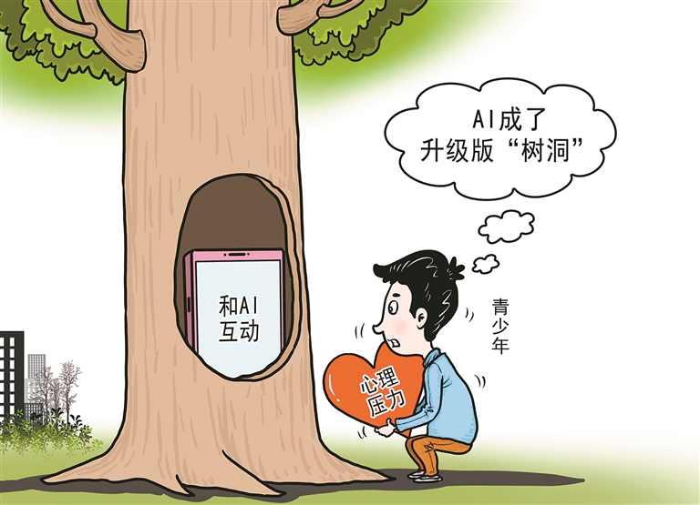 模拟考没考好、与父母发生了争执、不想秘密被别人知道……青少年的烦恼,如今有了24小时在线、秒回且守秘密的AI“树洞”。无可否认,AI“树洞”确实给了青少年的情感和心理诉求一个全新的“出口”。但也要看到,真人互动的价值依然是无可替代的,一声叹息、一个拥抱,都蕴含着AI无法给予的情感温度。守护青少年心理健康,家庭、学校和社会需要搭建更多交流场景,让孩子在真实互动中解决问题、释放情绪。 (周舟)