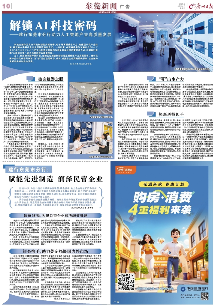 当下,科技的浪潮奔涌向前,金融也在加速创新以适应新质生产力发展要求。建行东莞市分行化作春风细雨,为“智”造企业的萌芽、成长、成熟全生命周期提供养料,以金融力量赋能先进制造业发展。