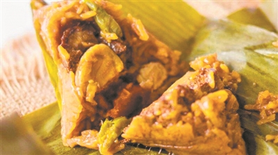 棉兰肉粽融合了中国和印度尼西亚风味,辣中带香。