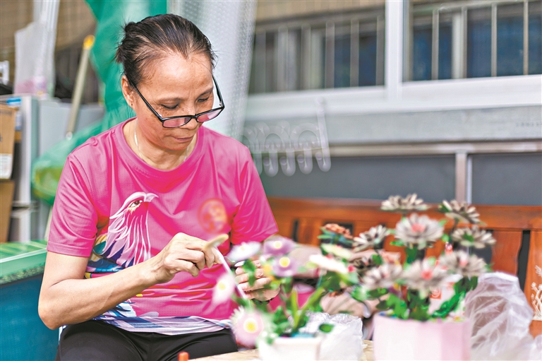 沙美社区在中元节有“摆中元”的传统,村里的女子从小跟着长辈学乞巧技艺,农历新年后就开始准备材料、制作手工花,中元节时在祠堂里“摆中元”。
