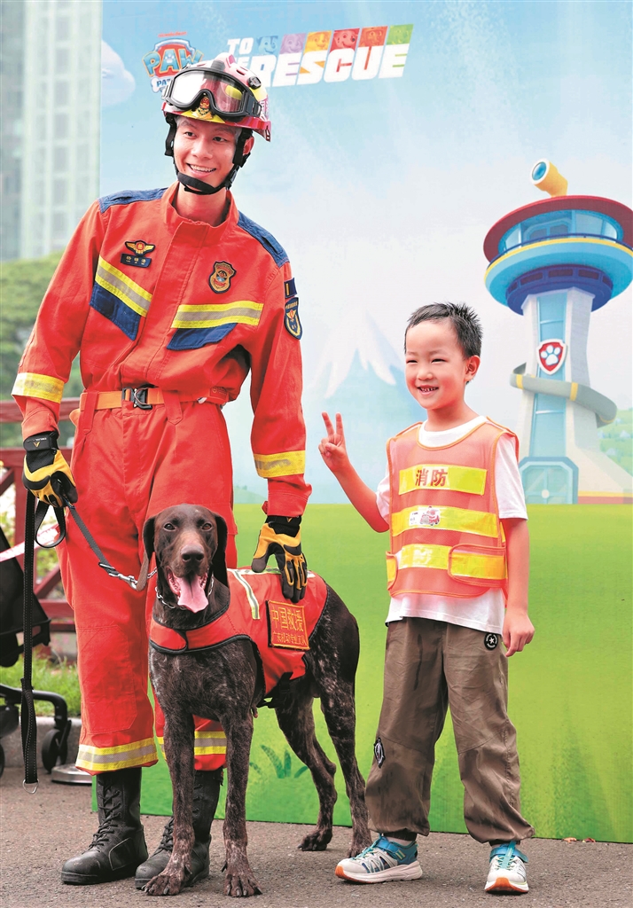 广州日报讯 (全媒体记者张丹羊 通讯员林佳晴、消宣)6月1日,“蓝焰童行,汪汪队出动”主题消防开放日活动在广州举行。30组亲子家庭在消防员的带领下走进天河区海心沙消防救援站,开始一场既有趣又有教育意义的消防安全之旅。