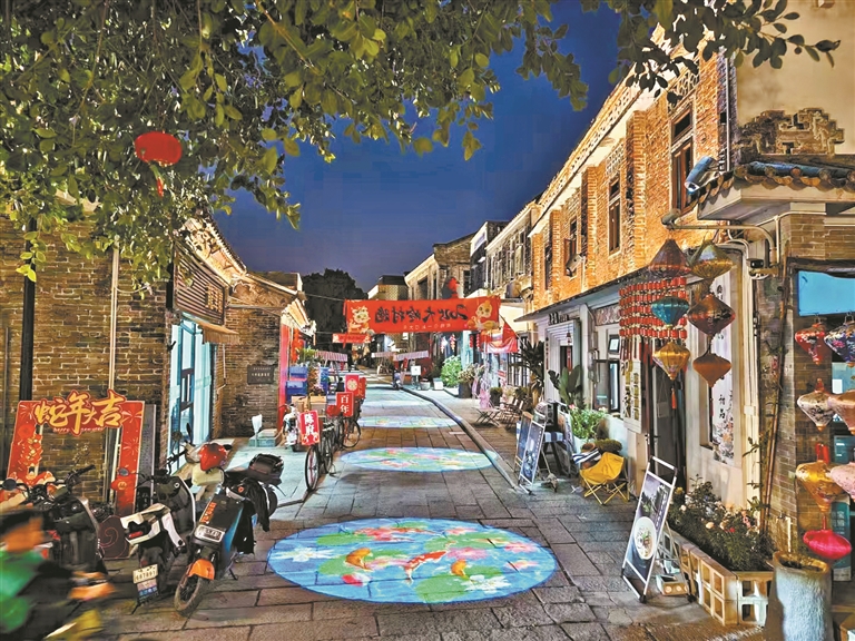 “原来文创街两旁都是一些老房子,冷冷清清。艺术家入驻后,人气旺了起来。在政府的支持下,艺术家参与打造了灯光文创集市。每逢节假日,灯光亮起,这条老街就变得很有魅力。”彭德平说,村内闲置空间环境改造,不仅有效提升了古村风貌,还进一步丰富了文商旅配套,让更多游客成为“回头客”甚至住下来,推动古村文旅产业的发展和繁荣。