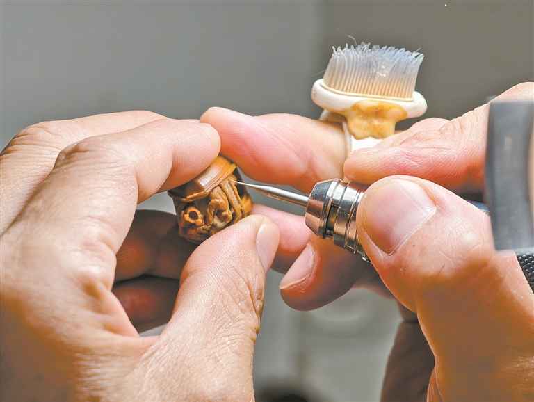 核雕匠人彭德平扎根大岭村 是非遗技艺传承的推动者 也是古村发展的参与者