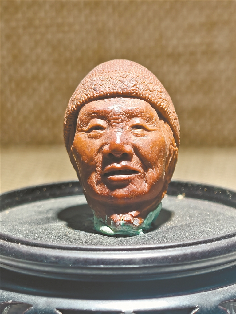 彭德平的榄雕作品,雕刻的是他奶奶的肖像。