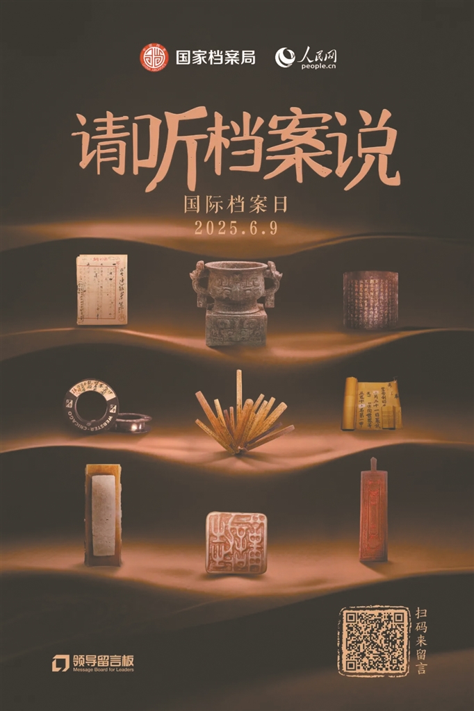 广州日报讯 (全媒体记者黄岚)6月9日是第18个国际档案日,今年的主题为“请听档案说”。近日,国家档案局发布了2025年国际档案日主题海报。海报中展示了多种具有历史文化价值的档案载体,如古老的竹简、青铜器、文书典籍、印章等,它们承载着不同时期的珍贵信息,是历史记忆的独特见证。