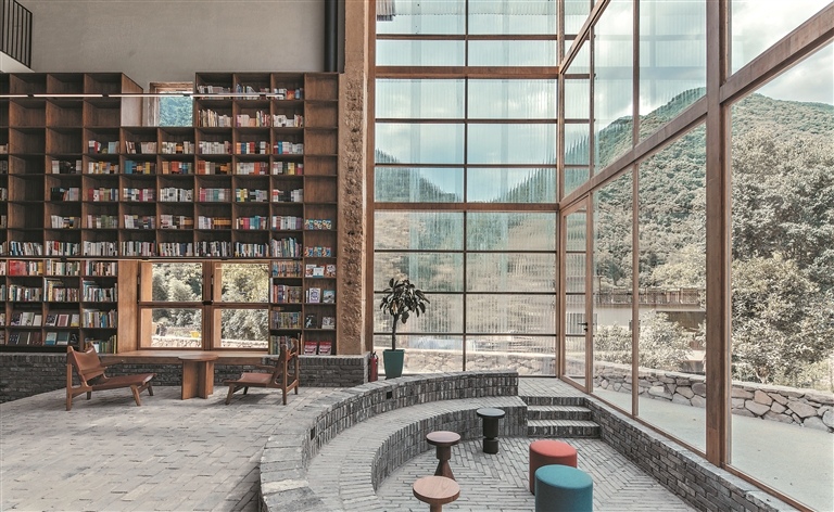 “这里的建筑延续了传统夯土墙工艺,将始建于上世纪60年代的大寨式民宅改造成四层立体空间。”放语空空间主理人胡艳丽告诉记者:“我们坚持‘外表修旧如旧,内部创意新生’的改造原则。建筑内部巧妙运用木构体系,通过湿度调节系统解决了山区藏书防潮难题。”