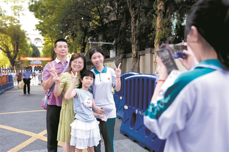 昨日,2025年普通高考文化课考试迎来第二天。褪去首日送考的喧嚣与紧张,考点外的氛围逐渐归于平静。即便烈日高悬,仍有不少家长守候在考点外,目光始终凝望着考场方向,仿佛要将无声的鼓励传递给正在考场奋笔疾书的孩子。记者现场看到,每一科考试结束后,无论是面带自信微笑、对发挥胸有成竹的,还是神色略显凝重、觉得表现不尽如人意的,考生们整体状态都显得沉稳从容。不少考生表示,不管考得如何,只要尽力了就没有遗憾。在这场人生大考中,从备考时全力以赴的坚持,到考场上全神贯注的拼搏,考生们不仅收获了知识的检验,更在这段历程中淬炼出坚韧的意志,从青涩走向了成熟。