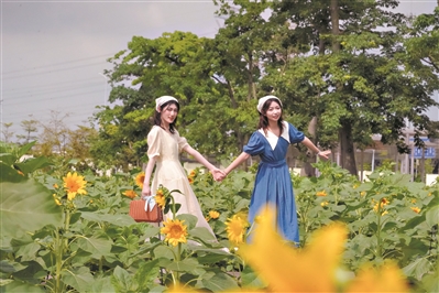 广州日报讯 (全媒体记者耿旭静、董业衡 通讯员何倩蓥、区泳铟、王敏杰摄影报道)广州南沙东涌官坦农业公园的超百亩、21万多株向日葵进入最佳赏花期,花期将持续至7月上旬,欢迎市民前来拍照打卡。