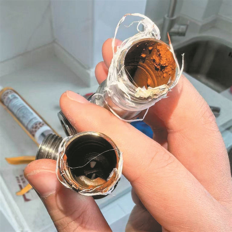 另一位住户周先生也表示,他去年12月收楼了,住进来之后就发现水龙头流出来的水是黄色的,甚至还带着铁锈。当时他找到开发商,工作人员表示“等小区入住人数较多,自来水管道的沉淀物会慢慢消失”,但没想到过了大半年,水质发黄问题一直没解决。