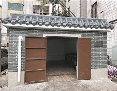 广州日报讯 (信息时报记者梁启明摄影报道)在荔湾区海龙街道海北市场旁边,一座崭新的青砖小屋显得格外别致,走近一看才发现原来这是一处垃圾收运中转站。而在此前,这里只是一处简陋的铁棚架,只做了简单的遮蔽。