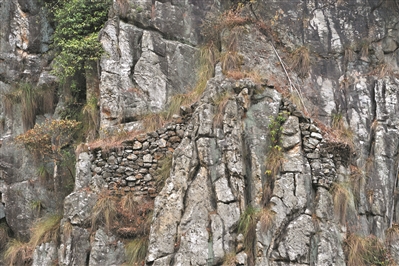 东岸栈道离河面较近,筑于明代,全长1000多米,宽逾1米,高低起伏处石阶错落,结构坚固。尽管如今两条栈道都被荆棘覆盖,但仔细辨认,仍能看到古人凿山开路的智慧与毅力。