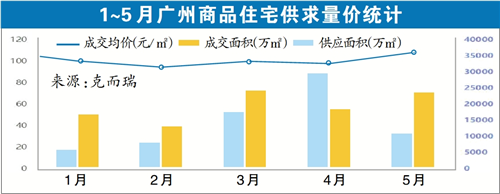值得注意的是,经过了三月、四月的集中放量供应后,自五月开始广州一手楼市的新增供应明显减少。克而瑞监控数据显示,全市供应面积环比下跌近六成。对于置业者而言,可能会感觉市场相对较为平淡。业内预测,下一波的集中供应可能在金九银十期间到来。
