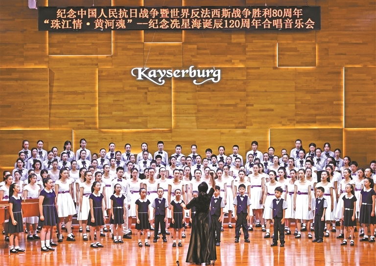 6月14日下午,“珠江情·黄河魂”音乐会在增城恺撒堡音乐厅举行,广州市合唱协会推出了《黄河大合唱》(童声版)。120名少年儿童开启了《黄河大合唱》(童声版)的中国首演。他们以清澈而饱含深情的童声,完美演绎了这部气势磅礴的经典之作。