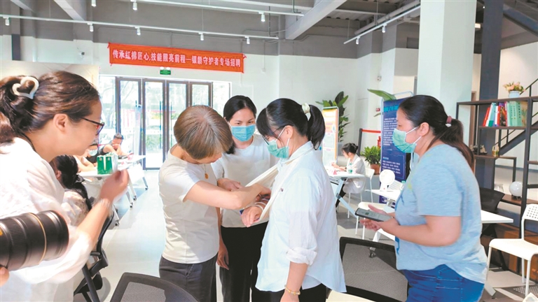 近日举办的“老年人应急处理与风险防控标准化操作”培训课堂上,主办方特别设置了就业对接环节,除了邀请多家养老服务机构现场招聘,还设置了就业指导咨询摊位。学员们不仅可以直接与企业交流技能掌握情况,还可以提升求职就业能力。