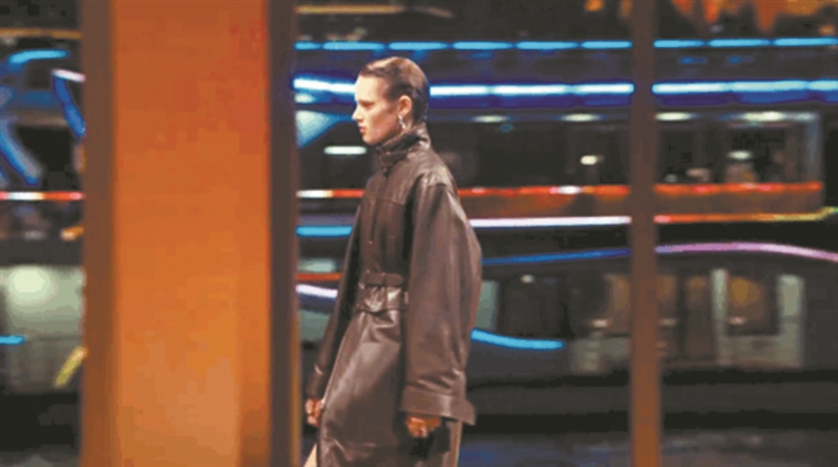 记者从模特走秀的现场所见,一套由皮革制成的半裙配夹克的造型,不仅展现了挺括夹克被柔软皮革撑起的层次感,更加以绗缝设计细节,透露出现代女性的果敢气质。在紧接着出现的模特造型里,除了传统的光滑牛皮革之外,还有亮面羊羔皮、磨绒小牛皮等创新质感面料。