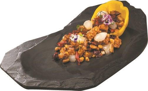 而荔枝宫保鸡丁则充分展现了川式糊辣遇上粤味清甜后的“味道升华”。据师傅介绍,荔枝味型有糖醋香味,在味型上与宫保鸡丁完美契合。