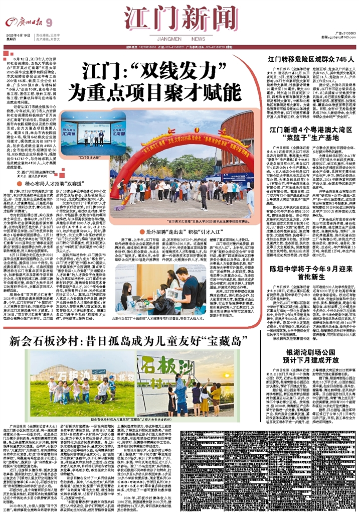 - 江门:“双线发力” 为重点项目聚才赋能 6月12日,江门市人力资源和社会保障局、五邑大学联合举办“百万英才汇南粤”五邑大学2025届毕业生夏季校园招聘会,本次招聘会参会企业中有工业200强16家、优质工业企业15家、广东500强8家、专