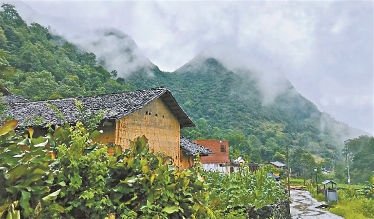 如今驾车可通过蜿蜒曲折的盘山公路抵达绝壁上的水吊村,在水泥路的尽头,水吊村的轮廓出现在眼前。站在村头,一侧是静谧的村庄,另一侧则是令人胆寒的绝壁深渊。村子里,大部分青壮年都已外出务工,除了风声和鸟鸣,显得十分安静,只有几位留守老人在地里劳作,饱经沧桑的泥砖屋错落有致地排列着,时光仿佛在此停留。