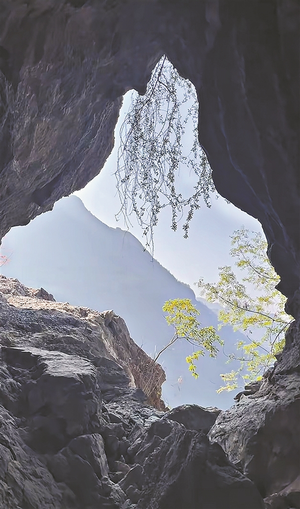 不知走了多久,前方出现了一丝光亮,走出洞口的那一刻,眼前的景象让人震撼:满目青山连绵起伏,洞口下是万丈绝壁,云雾在脚下缭绕,仿佛置身于仙境之中。如果是春夏雨季,暴雨突然来袭,溪流瞬间汇成山洪,从洞口倾泻而下,形成了一幅气势磅礴的瀑布景观。那飞流直下的水花,在阳光的折射下,闪烁着七彩的光芒,让人不禁感叹大自然的鬼斧神工。