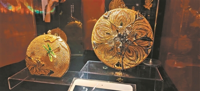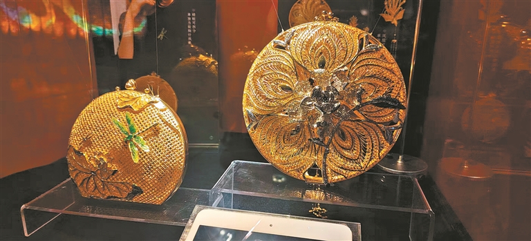 广东作为东道主,推选5件彰显岭南文化特色的力作亮相,包括广州玉雕《四灵纪》,在玉髓方寸间构建东方宇宙模型,将“四象神兽”与数字技术结合,体现了民艺表现手法的新探索;江门农民画作品《红土地上甘蔗甜》,突破年画媒介,在半生熟皮纸上重现建设史诗;深圳陶刻《陶镌华章》,将历代经典诗文镌刻于陶坯,实现文字载体与工艺美学的融合;深圳花丝镶嵌《国色(花丝手包)》,以非遗技艺重构时尚单品,使传统花丝工艺融入当代生活语境;佛山石湾陶塑《神仙放假的一天》,以“九宫格”样式展示一位“神仙”轻松写意的一天,风格诙谐,展现非遗传承的年轻化表达。